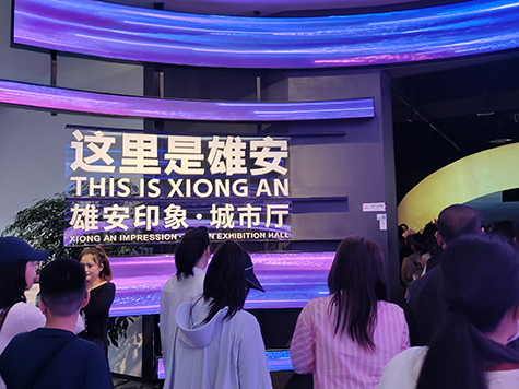 之后我们到达了雄安印象展馆,展馆中展示着雄安新区的规划设想,穿越“时光隧道”,沉浸式影像让大家身临其境,感受到了新区从无到有的变化。